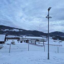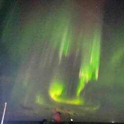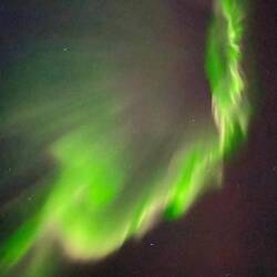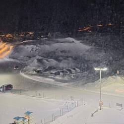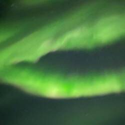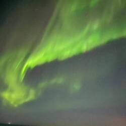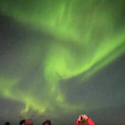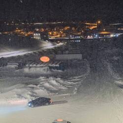 Ein kurzer Poststop am tief verschneiten Ort. Und später wieder Polarlichter. Erst durch das Objektiv der Kamara werden diese sichtbar.