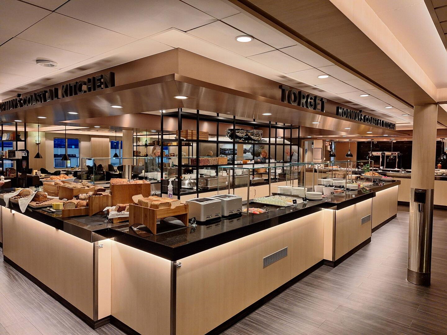 Überquerung mit der Fähre. An Bord Waffelecke mit Käse und Kuchen, Kaffee.