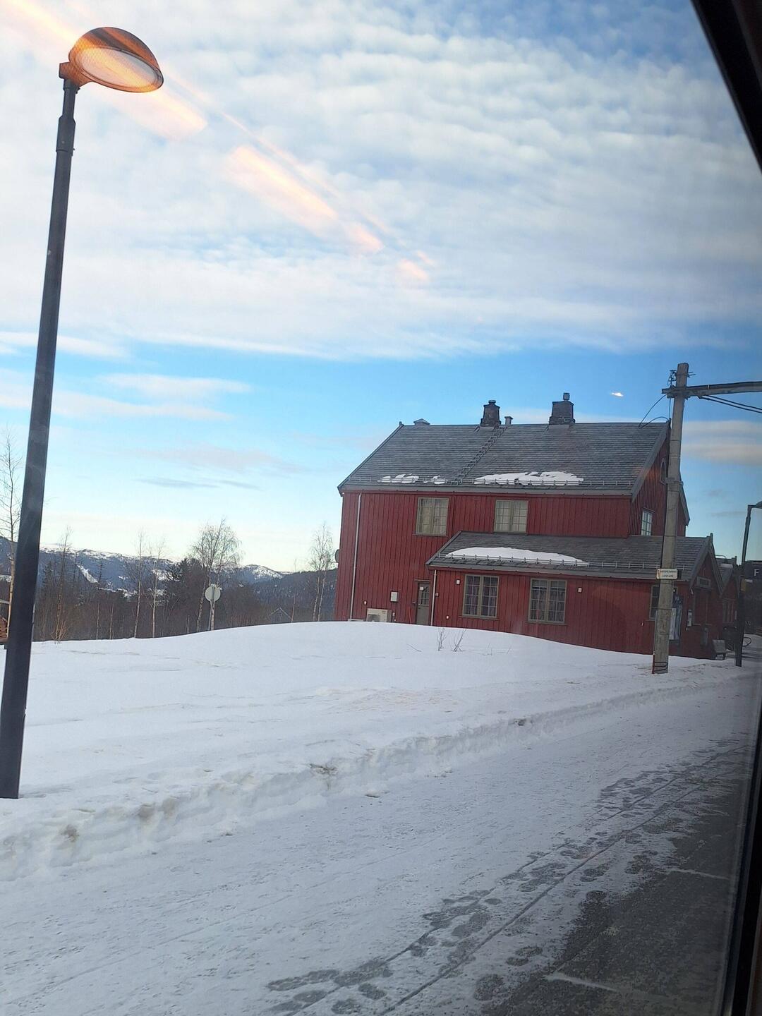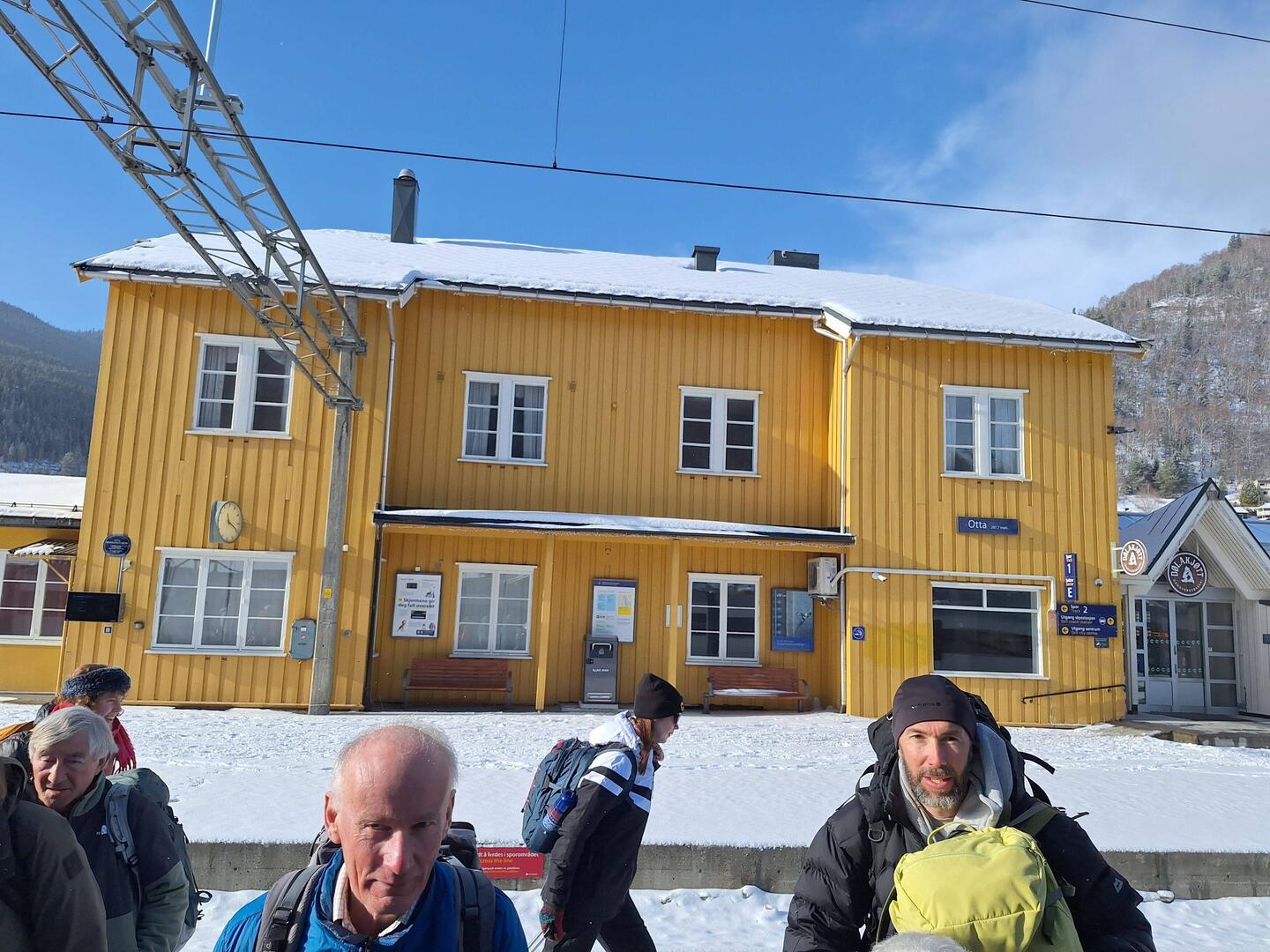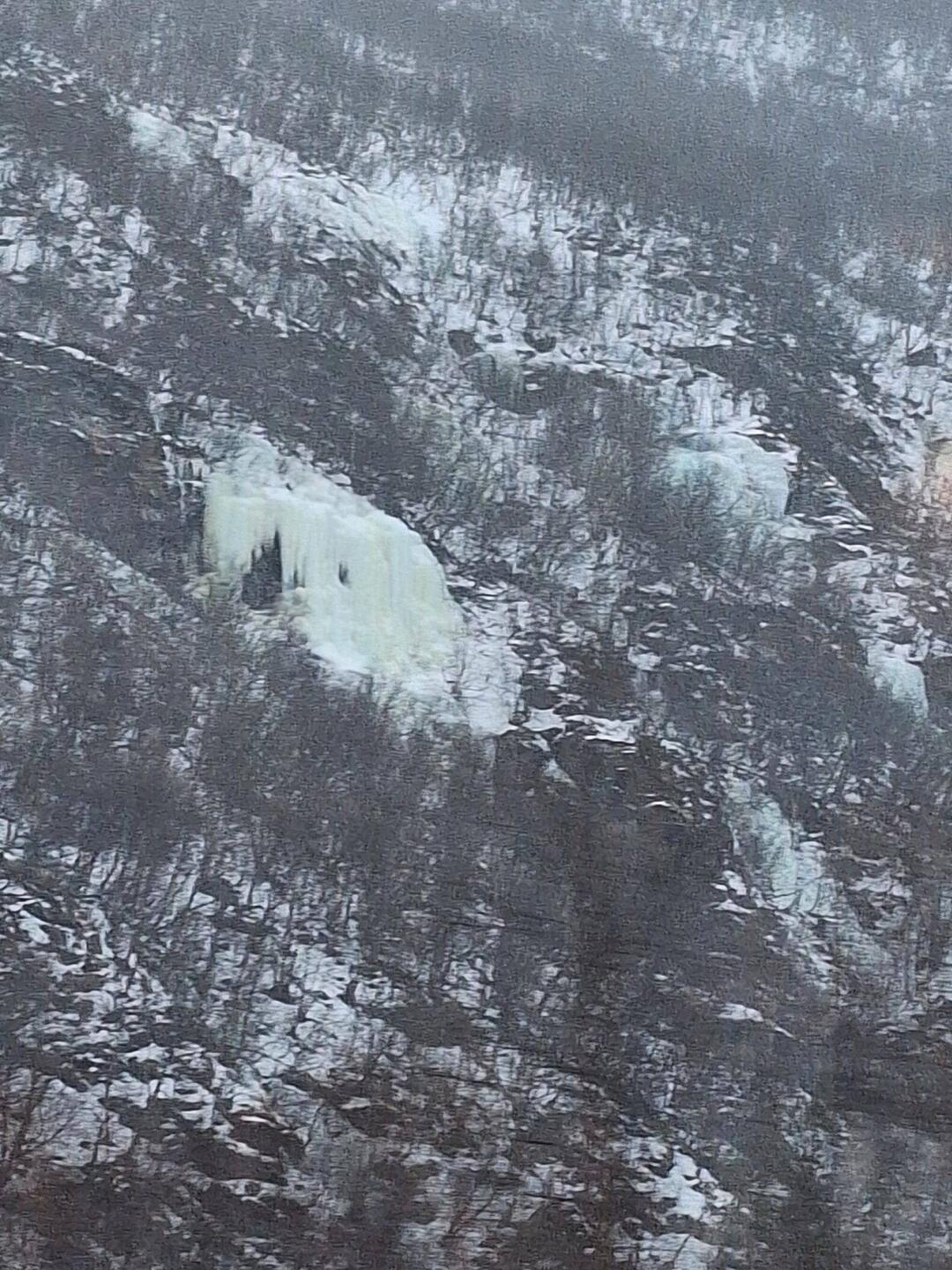 Ein sehr schöner Bahnhof. An den Berghängen sind viele zugefrorene Wasserfälle, die auch von Eisklettern genutzt werden.