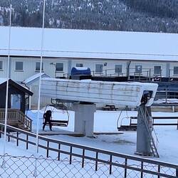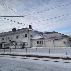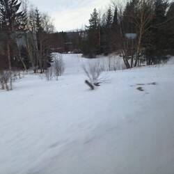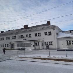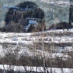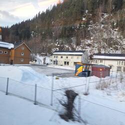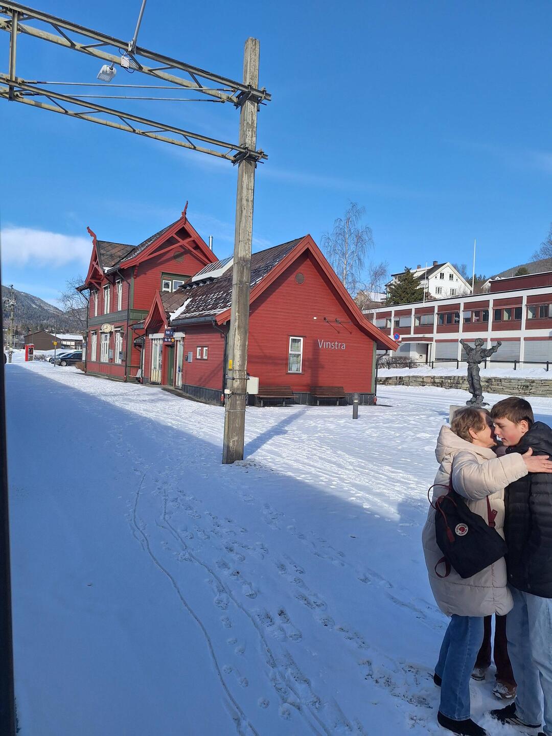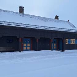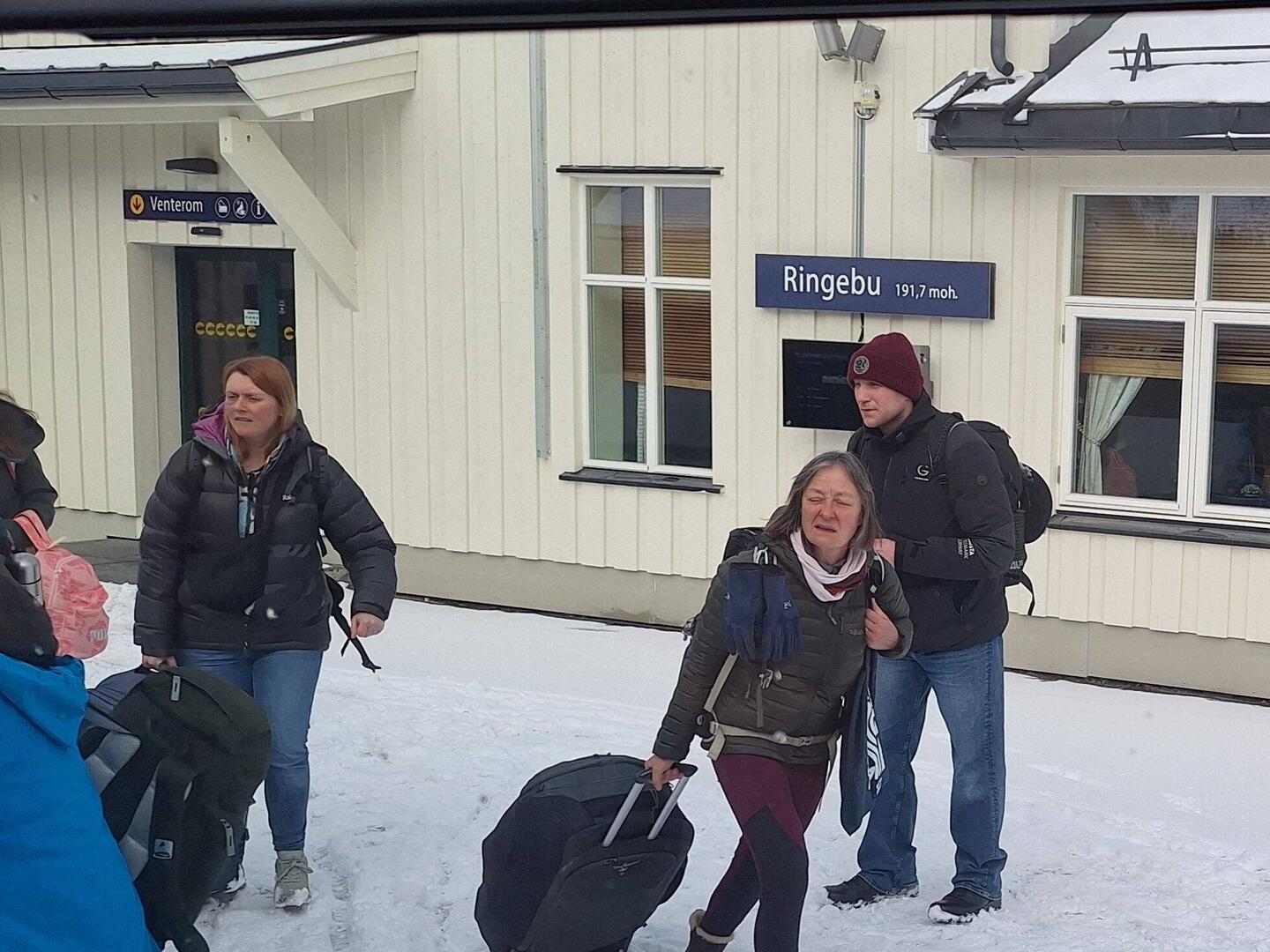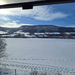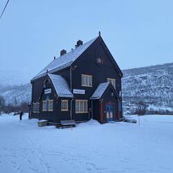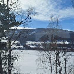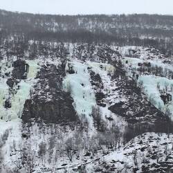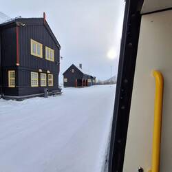 Ein sehr schöner Bahnhof. An den Berghängen sind viele zugefrorene Wasserfälle, die auch von Eisklettern genutzt werden.