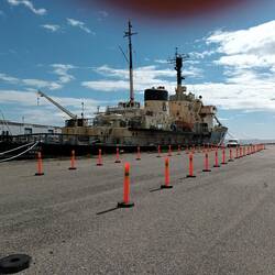 Über eine Schotterstraße zum Fischerhafen, der außer Anlegestellen und einem Kühlhaus nichts bot.