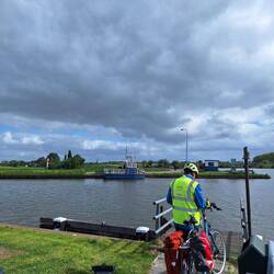 Mit einer kleinen Fußgängerfähre setzen wir über den Kanal. Für unsere Gruppe muss sie zweimal fahren.