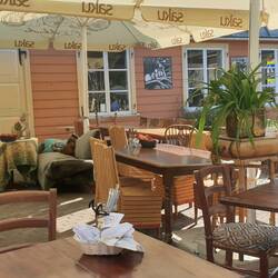Haapsalu ist ein Heilbad und war früher ein beliebtes Ferienziel der russischen Aristokratie. Ich komme zunächst zur Bischofsburg, die mitten in der Stadt und umgeben von einem Park liegt. Das Rad findet schnell einen Parkplatz. Die gepflegte Ruinenanlage mit der Kathedrale und einem angeschlossen Museum ist um diese Zeit leer. Der Turm der Burg ist zu besteigen und so klettere ich über die ganz eigenartig im Fischgrätmuster angeordneten Stufen nach oben. Leider kann man nur über Park und Anlage schauen und nicht, wie erhofft, bis zum Meer. Zum Meer laufe ich wenig später, vorbei an den Holzhäusern, die noch Renovierungsbedarf haben, entlang an der weißen Kirche bis zur Promende ans Wasser. Alles ist so geruhsam und nur wenige Menschen begegnen mir. Ein hoher im Stil der Holzhäuser gehaltener Turm erregt meine Aufmerksamkeit. Ein Mann mit einem riesigen Objektiv vor der Kamera steigt gerade herunter. Der Informationstafel entnehme ich anhand der Fotos, dass man vom Turm ins Vogelschutzgebiet schauen kann. Seltene Vögel wie Seeadler können von hier beobachtet werden. Eine Turmbesteigung reicht mir für heute, und so gehe ich zurück zur geschäftigen Flaniermeile, wo viele kleine Bars und Restaurants in den bunten Häusern mit originellen Ambiente auf Gäste hoffen. Einige haben ihre Fenster weit geöffnet, und so kann der Vorbeischlendernde nicht nur einen Blick auf die ausgehängt Karte, sondern auch in die Räumlichkeiten werfen. Das gefällt mir.