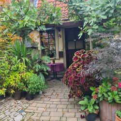 Irgendwie macht der Gang durch Dettelbach Appetit, denn auch mehrere Häckerwirtschaften haben ihre Tafeln vor der Tür stehen. Beim " Häusle am Rebenhügel" , das mit "Zwiebelplootz" und "Kürbis- Apfelsuppe" auf der Tafel wirbt, sorgt nur mein Verstand dafür, dass ich nicht einkehre, denn wir haben ja jetzt den Tisch im " Baccus" am Abend .