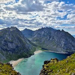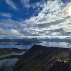 Heute am Vormittag war das Wetter bewölkt aber trocken, also machten wir uns auf den Weg zum Berg Festvågtind. Der Aufstieg war wieder mal sehr steil, wie es für die Lofoten üblich ist.
