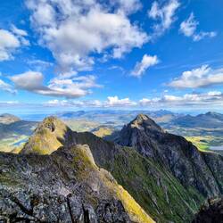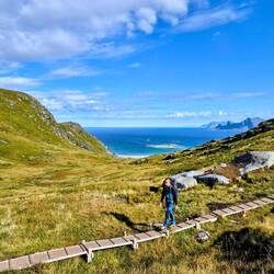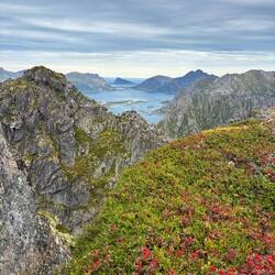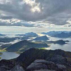 Kein Tag vergeht ohne Wanderung. Diesmal ging es auf den höchsten Berg auf Vestvågøy (eine Inselgruppe der Lofoten). Auf knapp 1000 Meter Seehöhe hatten wir einen überragenden Blick über dieMeer informatie