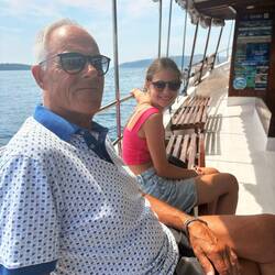 Wesley wil vandaag op de camping blijven. Ik ga met papa en de meiden naar het stadje. Wesley brengt ons erheen en terug gaan we met de taxiboot terug naar de camping.