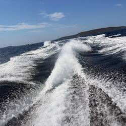Vanmorgen op tijd op! Om 9u worden bij de camping opgehaald voor een tour met een speedboot 🚤 Het is even spannend want het is wat bewolkt en waait ontzettend hard, de zee is enorm wild. De bootEn savoir plus