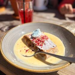 Lekker ontbeten en toen vertrokken naar het dorp. De mannen gaan downhill biken en wij gaan met de kabelbaan omhoog en maken een mooieEn savoir plus