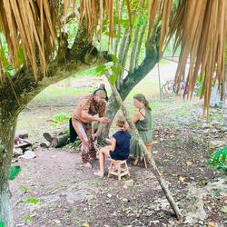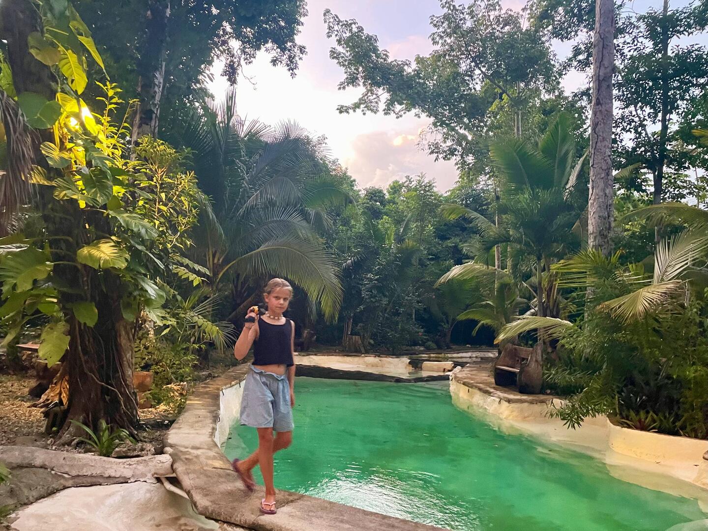 Der Jungle-Teil bestand zum Einen aus einen Jungle-Hotel. Das ist das Projekt von Valentin, einem Franco-Mexikaner und seiner Vietnamesisch-Französisch-Mexikanischen Mutter. Die beiden haben im Jungle ein kleines Paradies erschaffen. Mit Pool, selbstgezüchteten Pflanzen und Schildkröten und allem. Leider scheinen sie besser darin, neue Dinge anzufangen, als bestehende zu pflegen. Die Kinder lieben das dosierte Abenteuer, wir hätten uns auch über ein Moskitonetz ohne Löcher, eine Toilette, die nicht umkippt oder eine echte Dusche gefreut (insbesondere bei Magendarm). Vor allem aber sind Valentin und seine Mutter sehr liebevolle Gastgeber und hervorragende Köche.