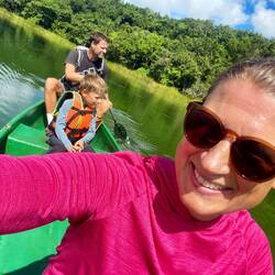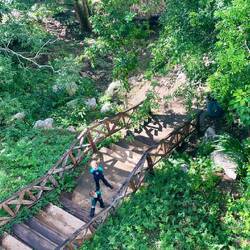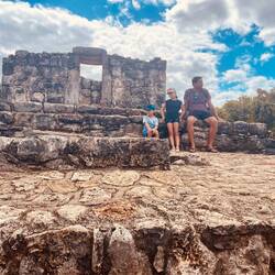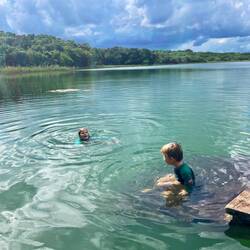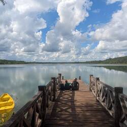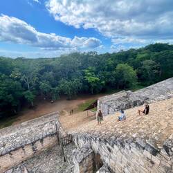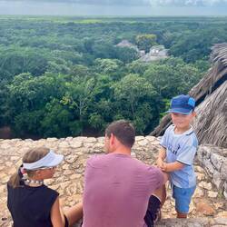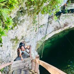 Außerdem machen wir noch eine geführte Tour in einem Schutzgebiet, dass von einigen Maya-Familien betrieben wird. In nur 3 Stunden wird uns Jungle und Abenteuer kompakt geboten. Wir wandern ein bißchen durch den Wald, bis wir Spinnenaffen und Brüllaffen finden, wir fahren Zip-Line über den See und ich versenke beim Kanufahren mein Handy. Zum Abschluss kühlen wir uns noch in einer Zenote ab die nur ein kleines Zugangsloch in der Decke ab. Runter werden wir abgeseilt (und davor von Mücken zerstochen). Und hoch geht es mit einer Strickleiter - gar nicht so einfach bei ca 15m Höhe, da spielen die Kinder ihren Vorteil in Sachen Gewicht und Kletterpraxis aus.