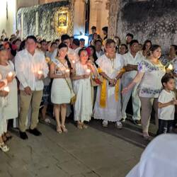 Auch wenn der Kern des Festes natürlich recht privat ist, könnten wir doch ein paar Dinge mitbekommen. An einem Abend gab es in Valladolid einen Altarwettbewerb der Schulen und auch einen Wettbewerb für die besten Katrina's. Das sind bunte und sehr kunstvolle Totenverkleidungen. An einem anderen Abend gab es eine Prozession mit Kerzen zum Friedhof - deren Stimmung allerdings etwas darunter litt, dass ein Großteil der Teilnehmer Touristen war.