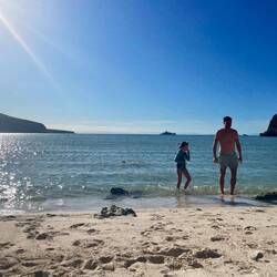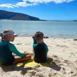 Die Tour selber hatte ein Highlight und zwar das Schwimmen und Schnorcheln mit Seelöwen - für Kenner : die sind größer als Robben und haben Ihren. Es war beeindruckend, wie die Tiere um uns herum spielten, entspannt ganz nah an uns heran kamen und sogar an Barbaras Flossen knabberten. Mit Schnorcheln und Taucherbrille sieht man erst. Wie elegant sie unter Wasser sind. Ein tolles Erlebnis, das leider zu schnell vorbei war. Danach gab es noch Lunch an einem weiteren Traumstrand und Zeit an einem kleinen Korallenriff zu schnorcheln. Grade für die Kinder, die das zum ersten Mal sahen, war auch das wieder toll. Und auf der Rückfahrt, als eigentlich alles vorbei war, haben wir dann noch 2 Wale gesehen. Was ein Tag.Read more