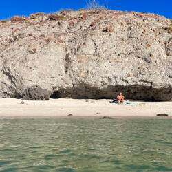 Und das Highlight der Tage in La Paz war dann noch die ganztägige Bootstour zur Insel Espiritu Santu, einem Naturschutzgebiet. Die Tour startete mit einer halben Stunde Verspätung, weil unsere Mitfahrer - eine 9-köpfige mexikanische Familie noch Bier holen müsste. Und zwar - wenn ich richtig gezählt habe, 5 12-er Packs Dosen mitsamt einer großen Kühlbox. Die Familie war durch die Bank adipös, öffnete die ersten Biere noch vor der Abfahrt und schwieg sich dann denn Rest der Fahrt über trinkende an. Etwas merkwürdig...