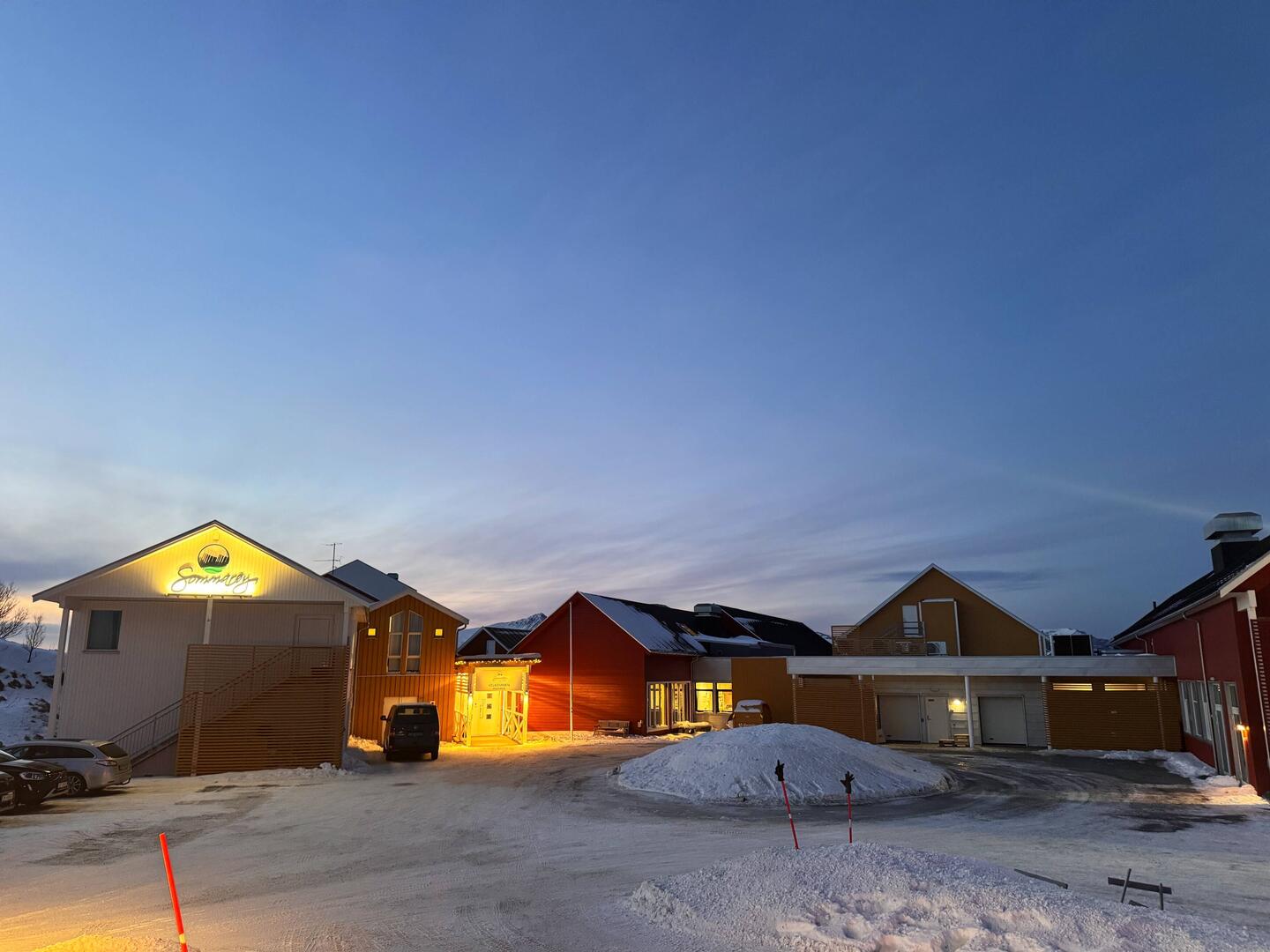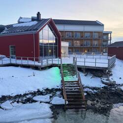 Das ist übrigens unser Hotel. Auf der schönen Insel Sommarøy.