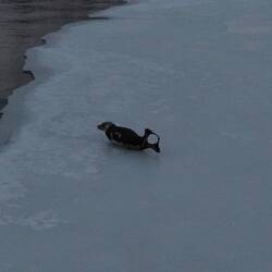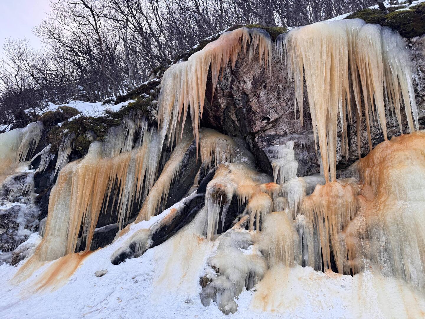 In Norwegen ist es so kalt, dass selbst das Salzwasser zu Eis wird. Auch der Robbe war das Wasser anscheinend zu alt. Auch aus den Felsen wachsen riesige Eiszapfen.