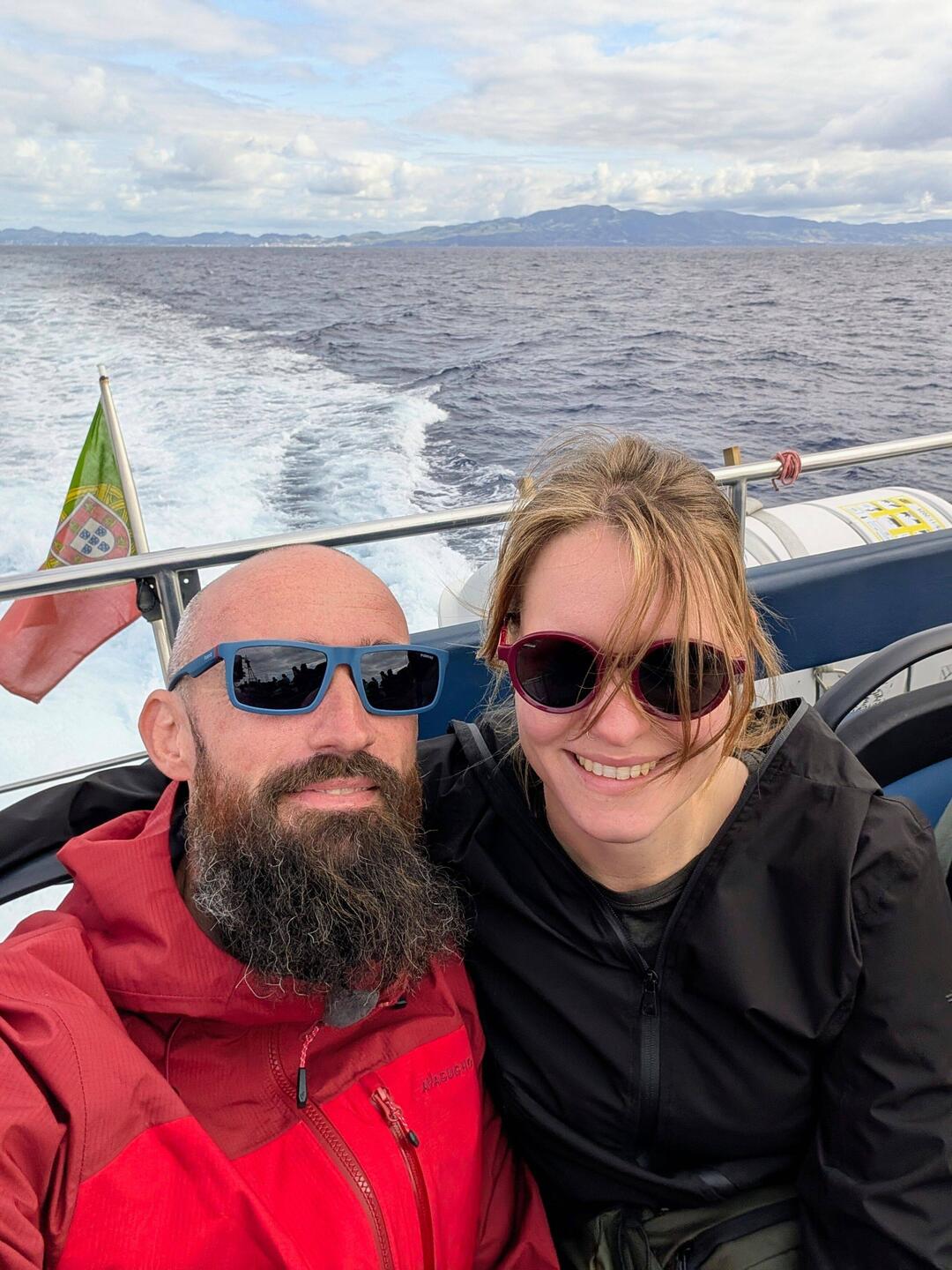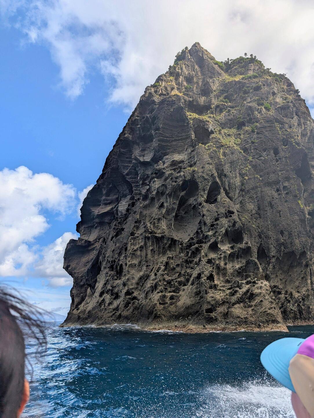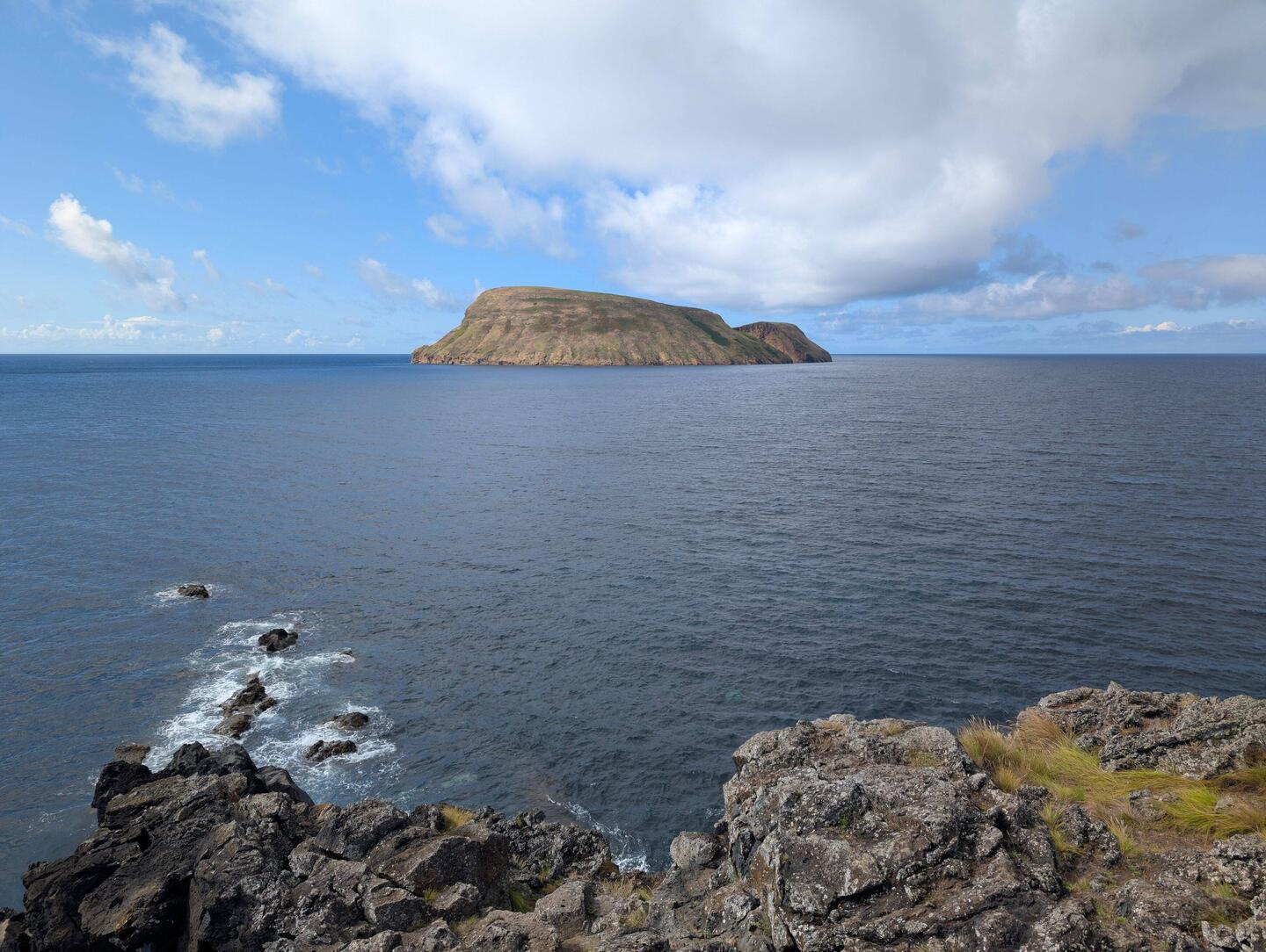 Nadat we het moois hadden gezien van de kust van Flores, was het tijd om de open zee op te gaan naar Corvo. De golven vielen goed mee, maar echte zeebenen hebben we nog niet dus blij met ons primatourtje.