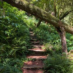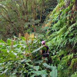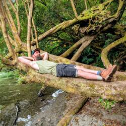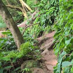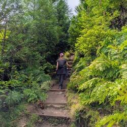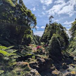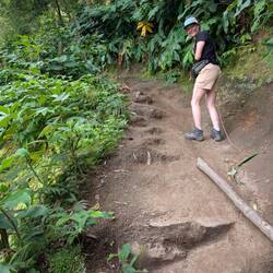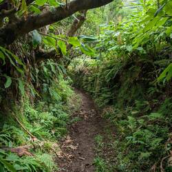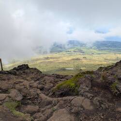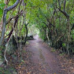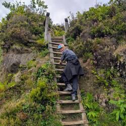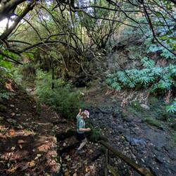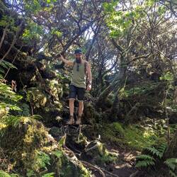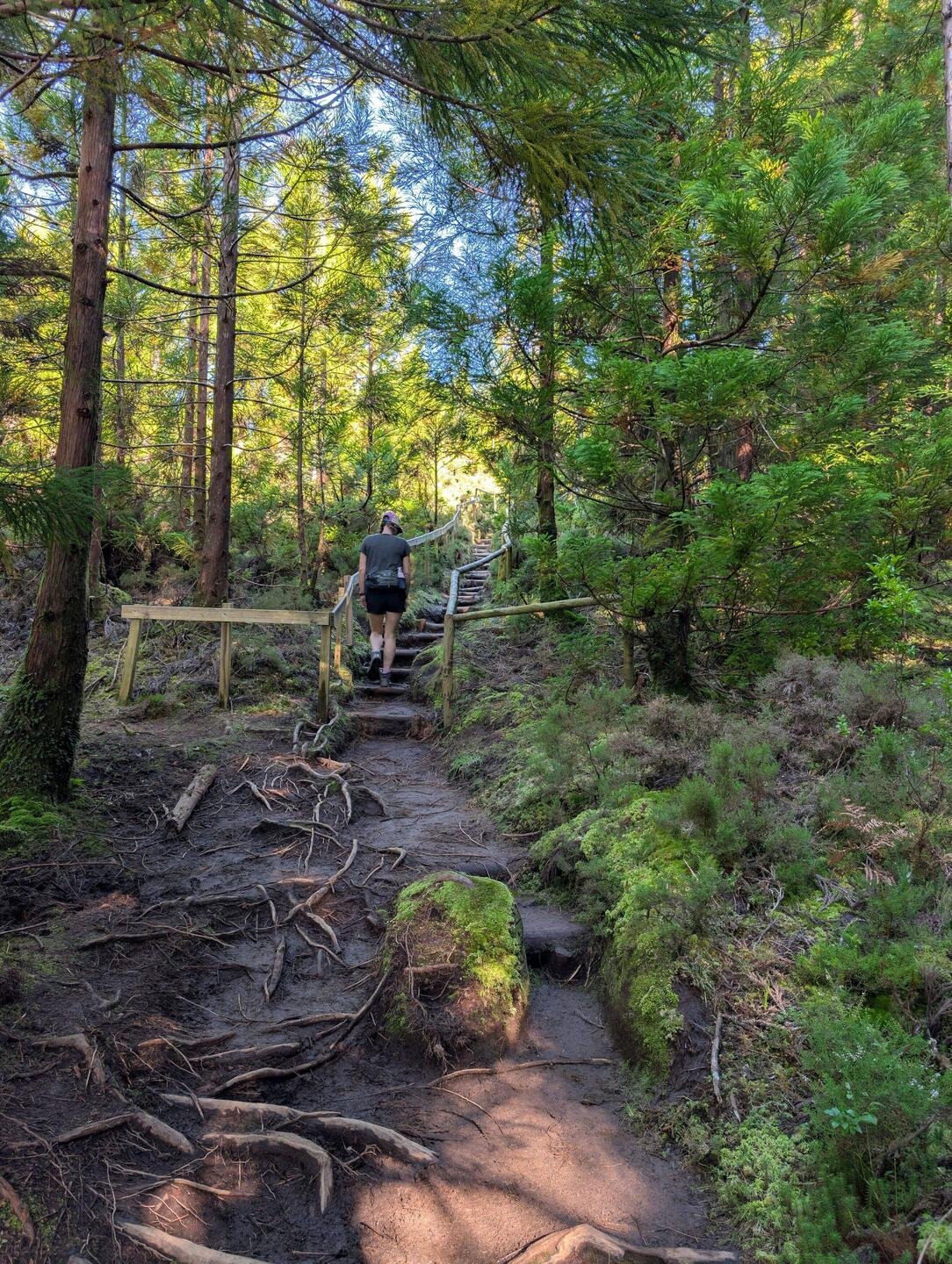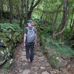 Ons was 2 keer afgeraden om deze hike te doen, dus wij dachten let's go!! De hike was 5,5 km, niet zo ver dus alleen je vergist je snel in het aantal km hier door het ruige terrein. Alle hikes beginnen hier lijkt het wel hetzelfde, parkeerplaats met ook veel mensen op leeftijd, brede grind paden, veel bankjes en onwijs veel bordjes. Langzaam gaat dat over in smalle paadjes, wat verwarrende aanwijzingen, bankjes houden op en de modder begint. Het wordt steeds stijler en rustiger, we komen wat afhakende mensen tegen die omkeren, en het pad is soms niet bestaand. Leuk!! Lekker klimmen en klauteren over boomwortels, over stenen en klimmen tot de boomgrens door oude lavavelden. We komen af en toe een andere wandelaar tegen, vaak met sneakers en een bleek gezichtje. Protip: sneakers zijn leuk voor de dorpen hier maar trek altijd je sexloze wandelschoenen aan, want je zal ze nodig hebben haha.