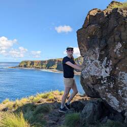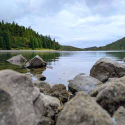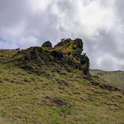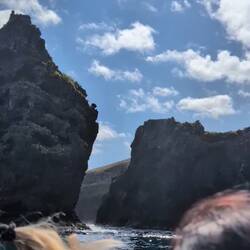 Laatste stop van de dag; stenen! Inmiddels traditie voor ons om langs niet te bereiken stenen te gaan. Mo heeft een fascinatie voor grote stenen, en het liefst op spannende weggetjes! Okee dan, onze kleine Toyota red het allemaal nét in zijn 1, en dit stuk is helemaal verlaten. Sowieso is het nergens druk op dit eiland, heel andere vibe dan Sao Miguel. We komen nog 1 andere verdwaalde tourist tegen. Gave stenen trouwens, op een dag leren we klimmen op dit soort stenen, lijkt ons vet!