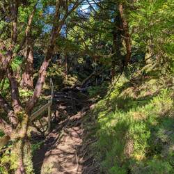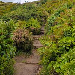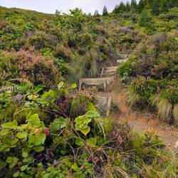 Het pad begint gelijk lekker stijl, maar dat is nog niks! We zien vermoeide wandelaars met knikkende knietjes en trilbeentjes afdalen, dit belooft wat.
