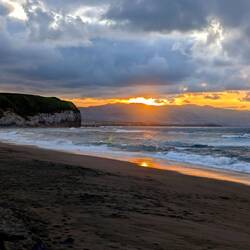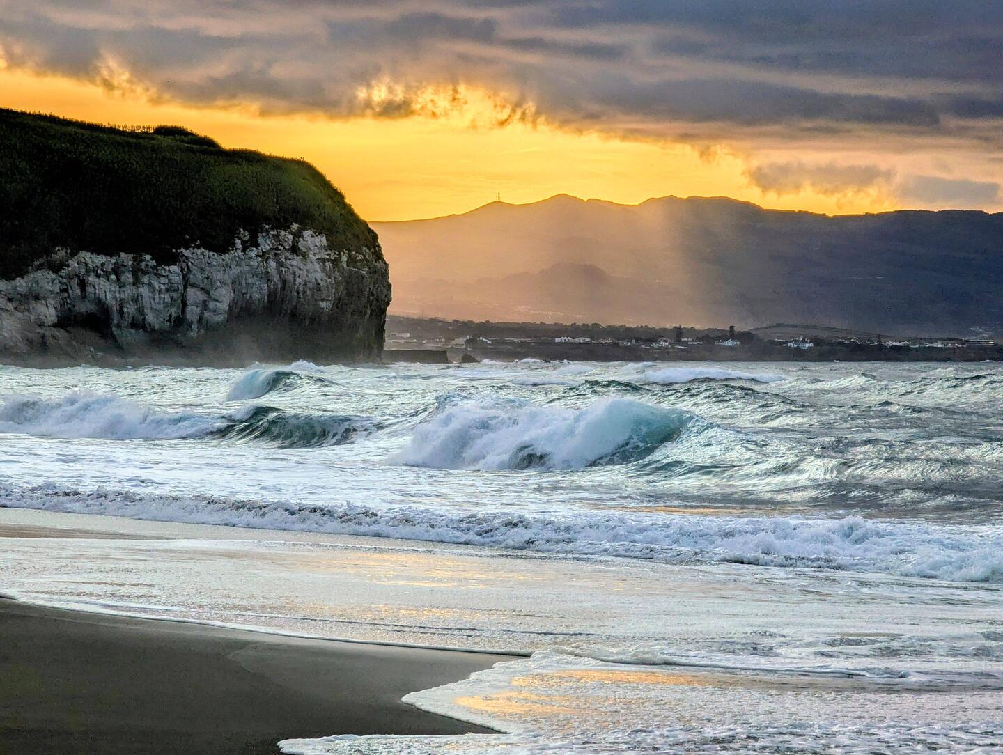 Tijd voor eten! Alweer. Van al die avonturen krijg je honger! We reden de berg af, en namen de afslag naar het stadje Ribera Grande. Of, dat dachten we, maar ineens hield de weg op en reden we door gravel. Bij de autohuur werdt er vaak en nadrukkelijk gezegd NIET offroad maar wij vinden dat als maps het een weg vind, het niet offroad is, dus we zijn maar doorgereden haha. Sowieso kon keren niet langs de smalle weggetjes. Gelukkig kwamen we wel ongeveer uit waar we wilden en we hebben heerlijk gegeten in het stadje. Bij zonsondergang hebben we een prachtige wandeling gemaakt over dit prachtige zwarte surfstrand! Beetje romantiek mag natuurlijk ook, het is tenslotte onze honniemoon!