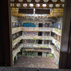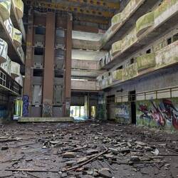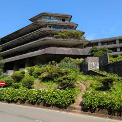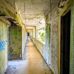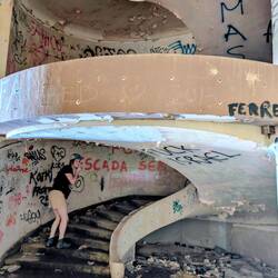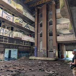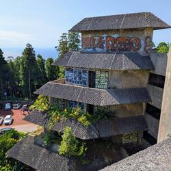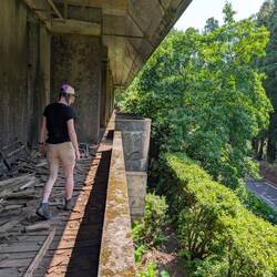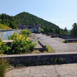 Geen tripje compleet zonder avontuur van discutabele legaliteit, al klinkt dat spannender dan het was haha. Bovenop een berg met uitzicht op de krater meren van Cete Cidades ligt dit verlaten hotel. Het hotel is gebouwd in 1989 en maar 19 maanden open geweest, toen ging het sjieke hotel failliet en raakte het hotel in verval. Het staat sindsdien leeg en is 'dicht' voor bezoekers, overal hangen aanplakbiljetten met niet betreden en tegen de wet! We klommen over een muur en begonnen ons avontuur! We kwamen er heel snel achter dat het vrij druk was, de ingang gewoon open was en je zo heel makkelijk naar binnen kon lopen haha.