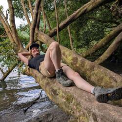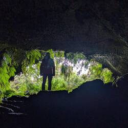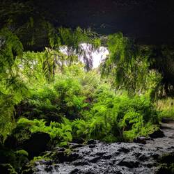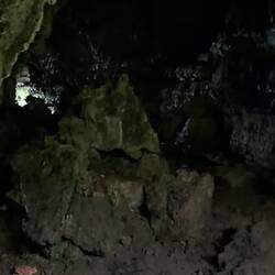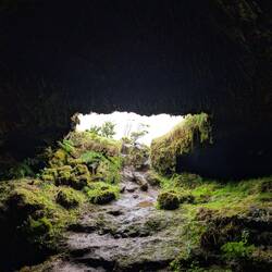 We komen aan bij de lavagrotten, deze zijn nog niet erg bekend en ook niet gereguleerd, dus we zijn met 6 man in de grotten. We hadden wel echt een zaklamp ofzo mee moeten nemen, want ons telefoon lampje doet vrij weinig hier! We gaan ook niet te diep, omdat de grotten niet gereguleerd zijn en er is instortingsgevaar. Maar de beginstukken zijn geweldig mooi, en levert prachtige fotos op met de prachtige groene jungle vegetatie!