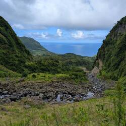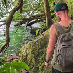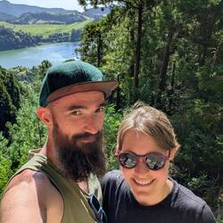 De ochtend begon lekker rustig, het is tenslotte ook vakantie dus af en toe mag je uitslapen! Na het ontbijtje was plan A eigenlijk een 10km hike met veel klimmen, maar Nien was nogsteeds niet helemaal fit dus we besloten een rustiger plan te maken, rondje om het eiland langs mooie punten! We reden tussen schattige kleine dorpjes, weilanden met vooral koeien en maïs, en prachtige uitzichtpunten. Van een local kregen we eerder al een tip van een korte watervallen hike en dat is precies waar we zin in hadden. Super mooie wandeling, wat is de natuur toch geweldig! Over de hele lengte van het beekje waren prachtige watervallen te vinden en met wat klimwerk kon je heel dichtbij komen, vet!