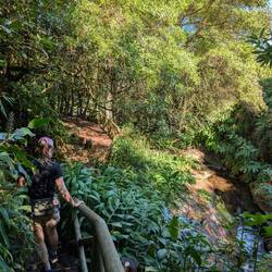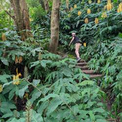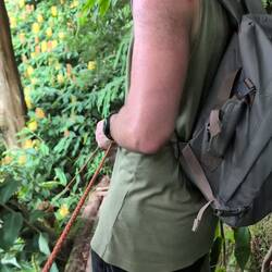 Het grindpad veranderende in een smal bospad, met overgroeide jungle en stijle afgronden. Onze bergschoenen bleken geen overbodige luxe. Af en toe was er een 'safety rope' door iemand opgehangen, zodat je niet te pletter viel. Lief! Stukken op handen en knieën, over of onder bomen door, een heel wankel smal bruggetje, prachtige strandjes en bange wandelaars, we hebben het allemaal gezien. Dit was écht een van de leukste hikes ooit. We waren wel kapot na deze hike, 5km is niet veel, maar zo is het best inspanninend en we hadden al aardig wat gelopen. Op naar het hotel, waar we lekker een 'borrelsituatie' met een fles wijn hadden, en na een verfrissende duik in het zwembad (Nien kan eindelijk zwemmen!!) lekker borrelen op het balkon en een keer niet uit eten. Wat een super dag!!