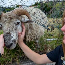 Wel maakte we een kleine avondwandeling, langs de prachtige ruige kust en onderweg nog even knuffelen met het liefste schaap van de Azoren!