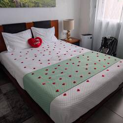 Toen kregen we een appje dat ons appartement klaar was en met een tas vol boodschappen gingen we naar binnen. De host had samen met haar kinderen alles versierd, mega schattig! Een koude fles champagne en een fles wijn wachtte ons weer op. Geen straf!!