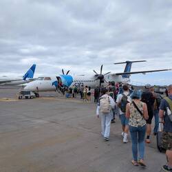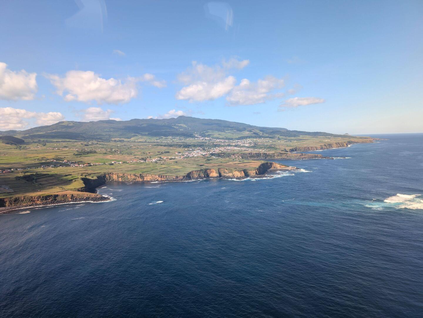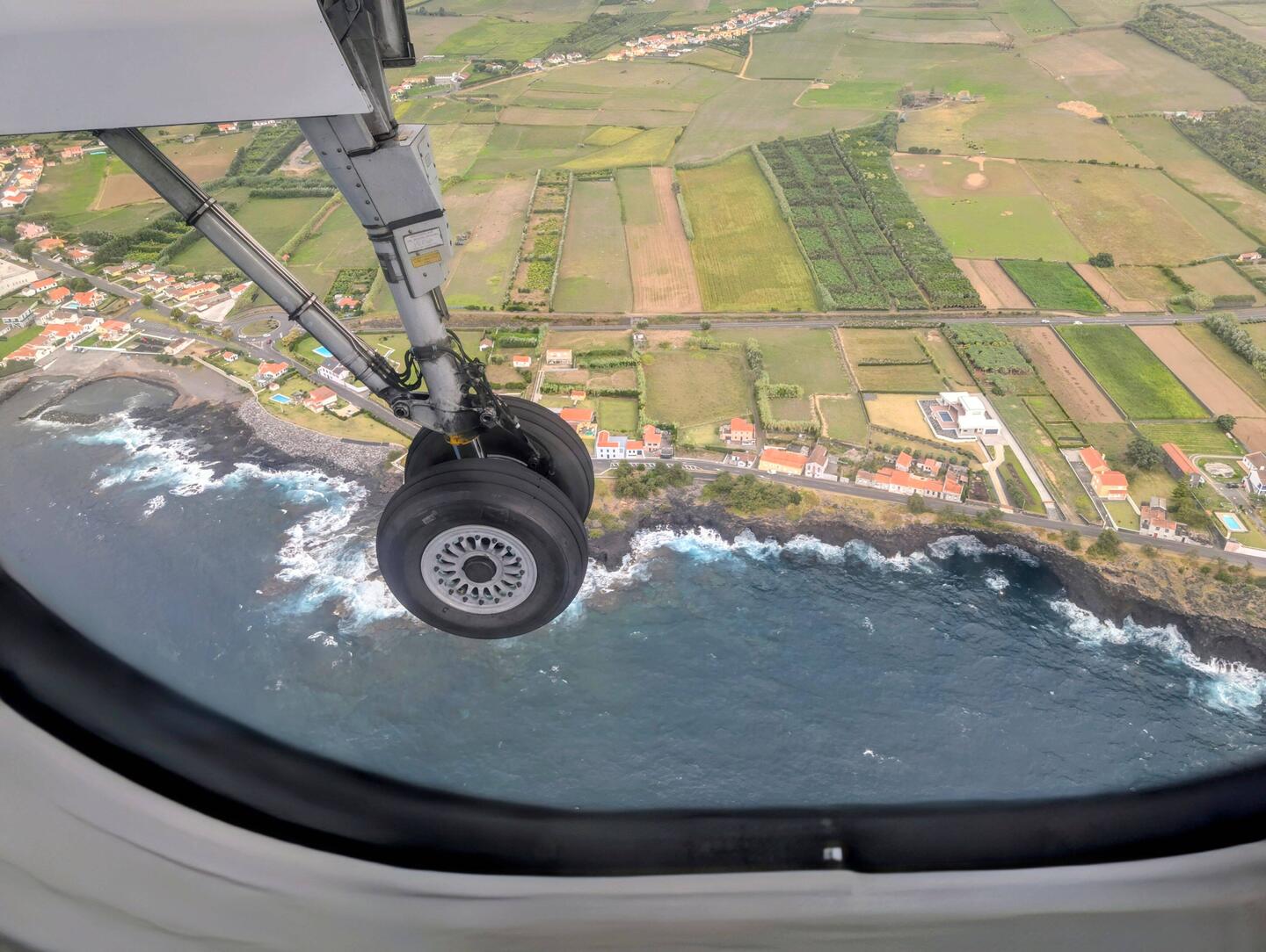 Het is 30 min vliegen, onze kortste vlucht. Helaas gaat er niet een milieu vriendelijker alternatief, de oceaan is te wild tussen andere eilanden voor een pont. Alleen tussen Faial-Pico-Saint Jorge en Flores-Corvo kan je met de pont, en overmorgen stappen we ook op de pont naar Pico.