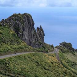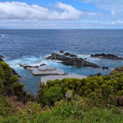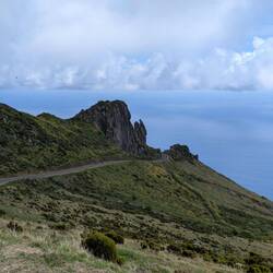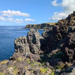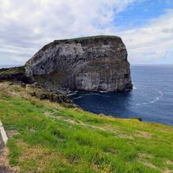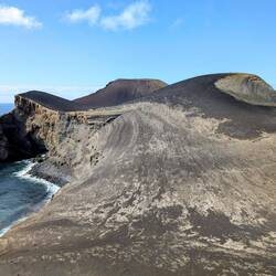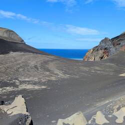 e puntje, wat een heel ander beeld gaf dan wat we tot nu toe hebben gezien! De Capelinhos vulkaan die deze kust vormt is in 1957 uitgebarsten, en daarom is dit stuk nog niet begroeid. De vulkaanuitbarsting heeft voor veel disruptie gezorgd in de vorm van aswolken die de oogsten liet mislukken, en als gevolg daarvan zijn er veel mensen naar Brazilië en Amerika geëmigreerd, daar kregen ze een verblijfsvergunning.