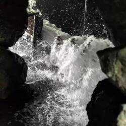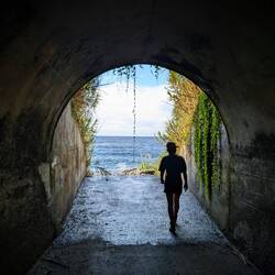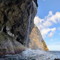De waterval leid naar een tunnel onder de landingsbaan van het vliegveld, en komt uit bij de zee. Je kan er doorheen, dus dat wilden wij wel even zien natuurlijk! Supergaaf, 40 meter lang en door een hoge afstap zie je de andere kant ook niet. Spooky!
