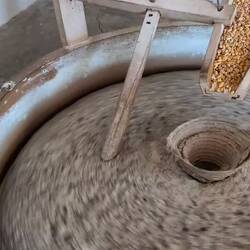 Bijna naast de watervallen stond een klein oud molentje, en een Portugese 'Babuska' (aka oud omaatje) liet ons graag zien hoe ze meel maalde in haar oude molentje. Vet! De stok op de molensteen laat het bakje wiebelen en zo komt er telkens een klein beetje graan op de steen, wat vervolgens fijngemaald wordt tot meel. Het water uit het riviertje stroomt onder de molen door, en wordt door een kleine opening gedwongen om zo snelheid te laten maken voor het rad, dat zich precies onder de molenstenen bevindt. Tenminste, dit is wat wij begrepen met ons gebrekkige Portugees, handen en voeten werk en wat wijzen. Gaaf om te zien zeg, en wat een onwijs lief vrouwtje!