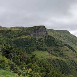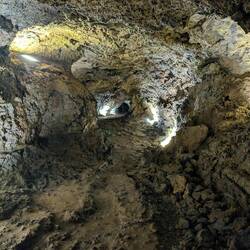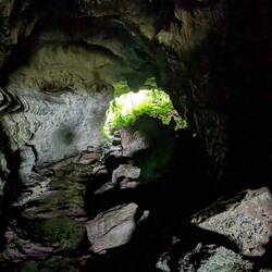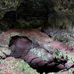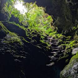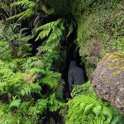We reden weer verder en omdat er een weg afgesloten is was de enige optie landinwaarts over de bergen, ook geen straf. We hadden op onze kaart nog lavagrotten gezien en dat leek ons ook superleuk! In Ijsland hebben we ook een poging gedaan maar wegens de recente uitbarstingen daar en het weer waren die telkens dicht, dus in de herkansing! Op Terceira is een nog veel indrukwekkendere cave te vinden, maar die is dicht door herstelwerkzaamheden, dit was een goede nummer 2. Indrukwekkend te zien hoe de hete lava zo'n enorme grot achterlaat, en we konden tot 700m lengte de grot in. Leuk!