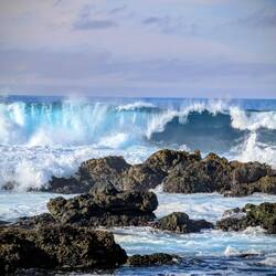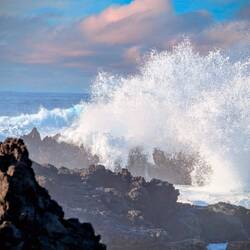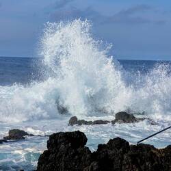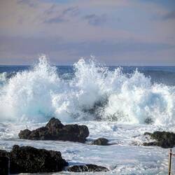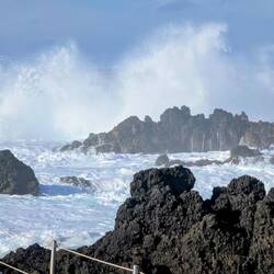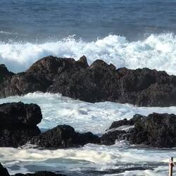 Weer in de auto, op naar de noordkust! Van West naar Oost is het een half uurtje rijden, eigenlijk is alles dichtbij. We kijken bij de wilde noordkust hoe de golven op de vulkanische rotsen klappen. Blijft een mooi gezicht!