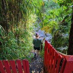 Mislukt! We waren toch al halverwege en het bordje "pas op, moeilijke wandeling en stijle trappen" lonkte ons toch, en we klommen de 480 stijle trap toch op haha. Eenmaal boven was ons de hoogste waterval van het eiland belooft, maar, hij stond bijna droog dus het was nogal een teleurstelling. Maar ook onwijs grappig, en gelachen met de andere toeristen die de tocht ook waagde.