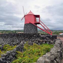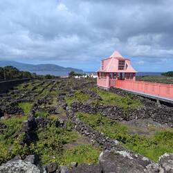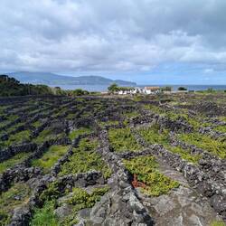 De druiven groeien ze hier op een vrij grappige manier, namelijk in 'currais', wat een lavastenen muurtje is. Zo zijn de druiven beter beschermd tegen de zoute en soms felle zeewind, en bijkomend voordeel is dat de zwarte stenen overdag veel warmte opnemen en 's nachts weer loslaten, het fungeert dus een beetje als een kas. Ook worden de planten onder een hoek gepland, zodat de takken bijna horizontaal op de grond groeien, ook ter bescherming tegen het weer. Een heel ander gezicht dan je gewend bent dus!