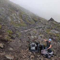 We ondertekenen een document van eigen risico, krijgen een GPS tracker met SOS functie en uitleg. Na een korte check van onze tassen en schoenen en het inpakken van de tent, matjes en slaapzak, gaan we pad!