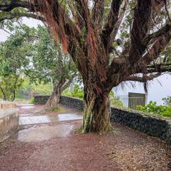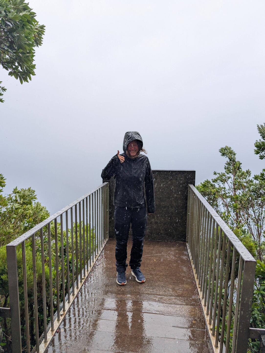 Na een korte stop gaan we weer door, vandaag rondje eiland met hoogtepunten en wijn. De volgende stop is het mooiste uitkijkpunt van Pico, maar inmiddels is de regen behoorlijk losgebarsten, het komt met bakken uit de hemel! Er is een orkaan op komst en het weer slaat wat om. Prachtig uitzicht, toch? We hebben de grootste lol in de regen maar keren als verzopen katjes terug de auto in, en besluiten wat viewpoints over te slaan wat je ziet geen zak haha.