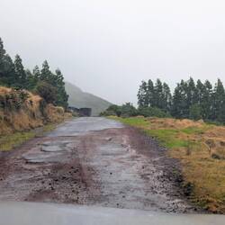 De weg ernaartoe was weer super avontuurlijk, ik weet niet hoe onze maps ingesteld was maar het was écht een van de spannendste wegen waar ik heb gereden! Door hele smalle super stijle weggetjes, meeste verhard maar ook stukken grind en ontzettend veel bochtjes. Het was ook verdacht rustig, onderweg naar een van de bekendste plekken van de Azoren. Buiten wat vreemd kijkende boeren niemand gezien. Remmen is angst! Of eigenlijk; met een beetje vaart de heuvel op anders red je het niet zonder 4x4 haha. Superleuk, we hebben het overleefd. Geen beelden van helaas, we waren nogal druk met overleven hahaha! Later bleek er wederom een grote weg te gaan, en voor de terugweg ook maar die genomen..