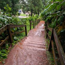 In de namiddag hadden we gereserveerd voor een hete bron bad, maar om daar te komen moesten onze arme beentjes ons eerst nog even een aantal trappen op slepen. Eenmaal boven bleken de baden vandaag dicht te zijn vanwege de regen (water in je bad, stel je voor!) Nou ja, we strompelen de trappen weer af, morgen weer een dag.