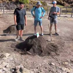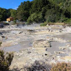 We begonnen de dag rustig met ontbijt en inpakken, toen gingen we nog een rondje door het park Furnas. We kwamen precies op het juiste moment, net voor de drukte en net op het moment dat een pan uit de hete grond werdt gehaald. Ze maken hier cozido, dat is een stoofpot dat 24uur in de hete grond wordt begraven en zo langzaam gaar stoomt. Er zit vanalles in, onder andere; vlees, bloedworst, chorizo, aardappel, yam (soort aardappel?), wortel en kool.