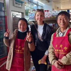 Und schon sind die 15 Tage wieder vorbei. Vor Abflug geht es noch auf die Yongdao Straße von Kunming, wo ich Flora getroffen habe, die mir ihre Winterjacke geliehen hat. So habe ich noch den BlumenLeia mais