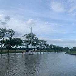 Am Morgen gibt es schon richtig was zu sehen. Ein Segelschiff, das gestern zu später Stunde nicht mehr durch die Brücke fahren konnte, bricht früh morgens auf und wir können beobachten wie dieLæs mere