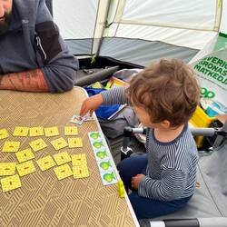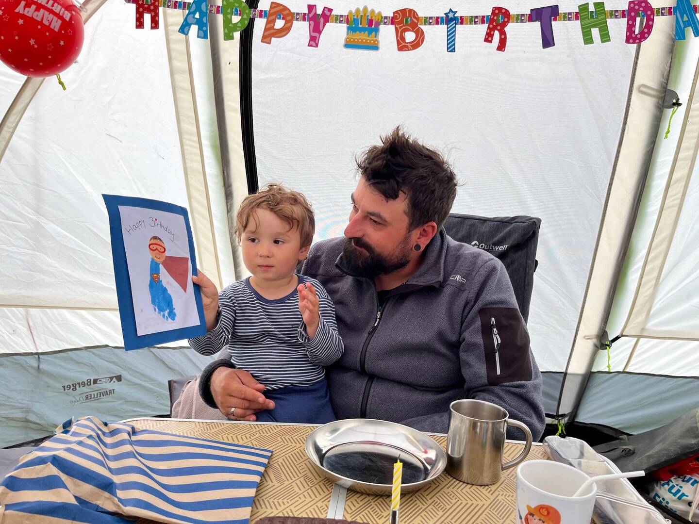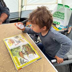 Marco und Pepe stiefeln schon mal zum Spielplatz los, während Judith im Zelt klar Schiff machtLæs mere