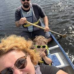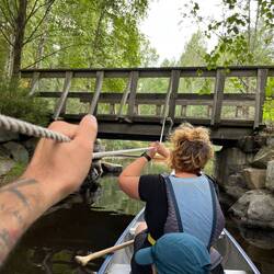 Wir frühstücken entspannt, nehmen ein Kanu und paddelnLæs mere