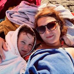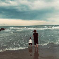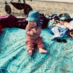 Zum Glück vergisst man beim Wellenhüpfen und Sandeln die Müdigkeit von all den neuen Eindrücken, sodass sich die heutige Laune bei allen wieder etwas bessert. Merle schläft beim Blick aufs Meer einfach ein. Was gibt es Schöneres als ein Schläfchen begleitet vom Meeresrauschen? 🌊