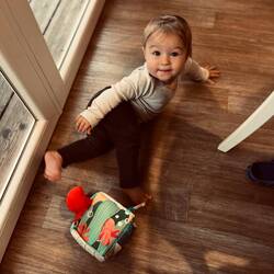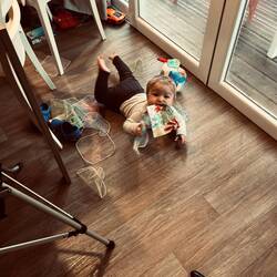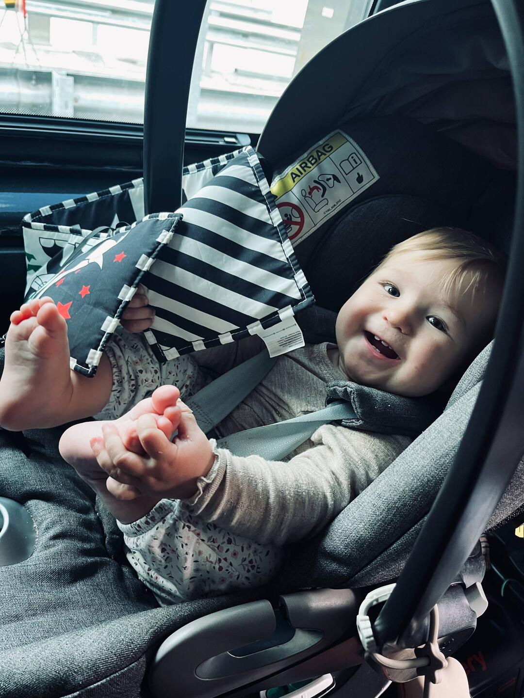Wir vertreiben uns die Zeit mit Kennzeichen raten und damit, Merle bei Laune zu halten – klappt mal mehr, mal weniger gut 😅. Als absolutes Lieblingsspiel entpuppt sich „Socken an und wieder aus“ – erstaunlich, wie lange man sich damit beschäftigen kann.